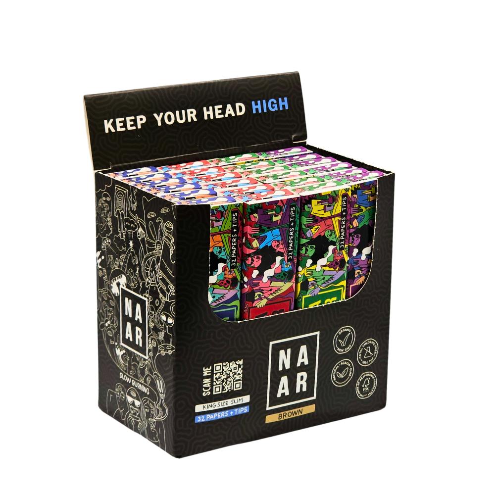 NAAR - Munchie Madness - King Size Slim Brown Rolling Papers+Tips